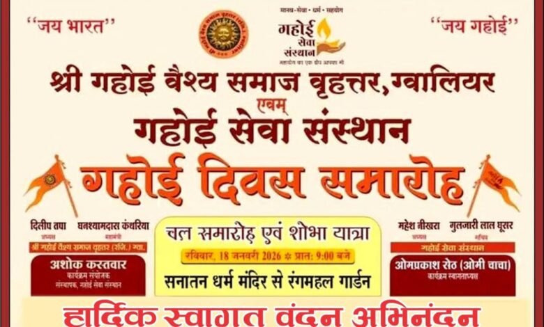 ग्वालियर में गहोई दिवस धूमधाम से मनाया गया, भव्य चल समारोह व सांस्कृतिक कार्यक्रम आयोजित