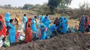 जल सहेलियों ने घुरारी नदी पर किया श्रमदान, बोरी बंधान से बढ़ाया जल प्रवाह