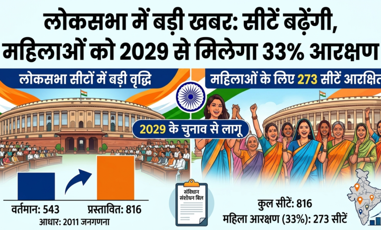 लोकसभा में बढ़ेंगी सीटें: 2029 से लागू होगा महिला आरक्षण, 816 हो सकती है सदस्यों की संख्या